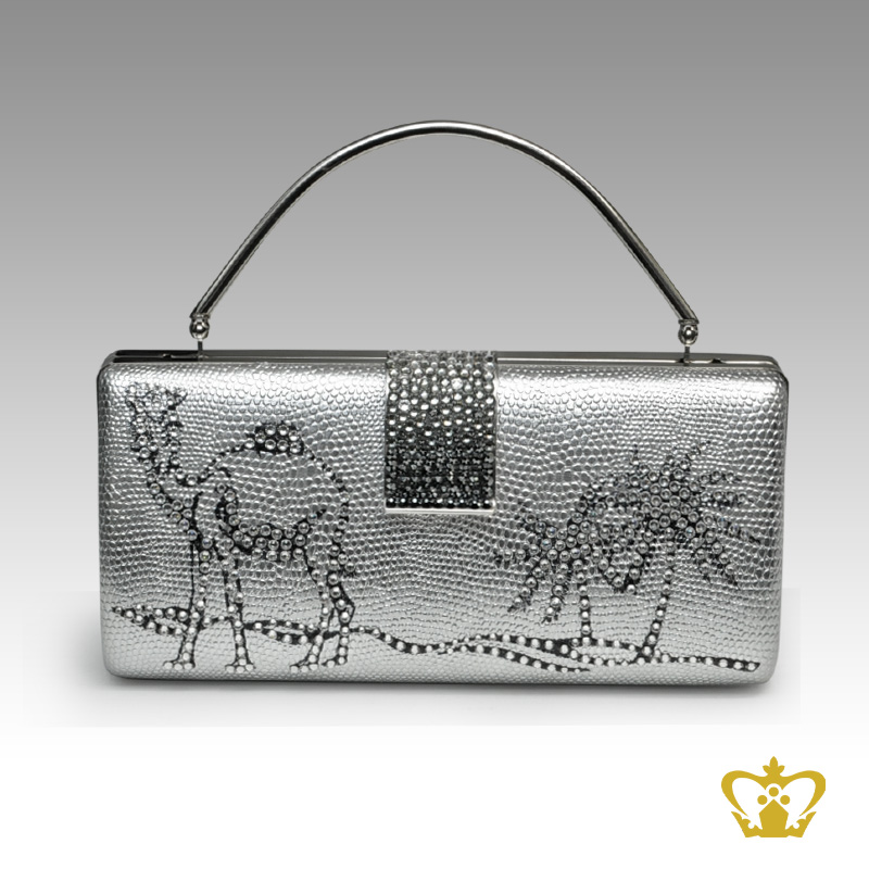 Ladies-purse-silver-color-embellished-clear-crystal-diamond-with-a-design-of-camel-palm-tree-clear-crystal-diamond-around-the-lock Product Product Product Product Product