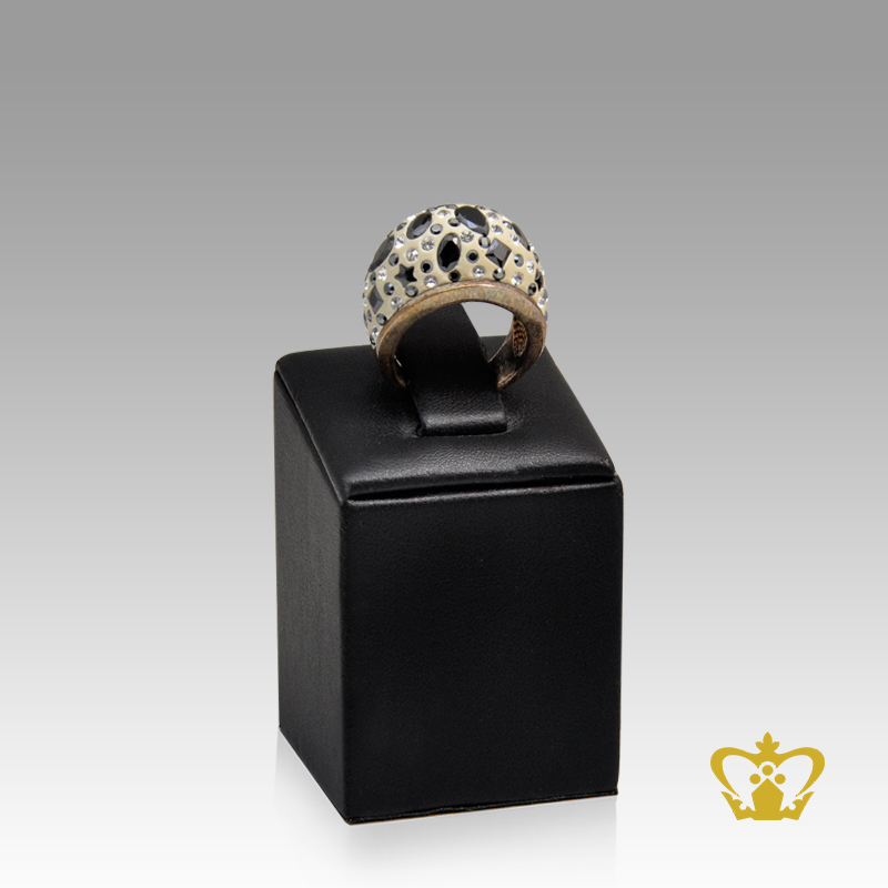 Classy-round-silver-ring-embellish-with-black-and-clear-crystal-stone Product Product