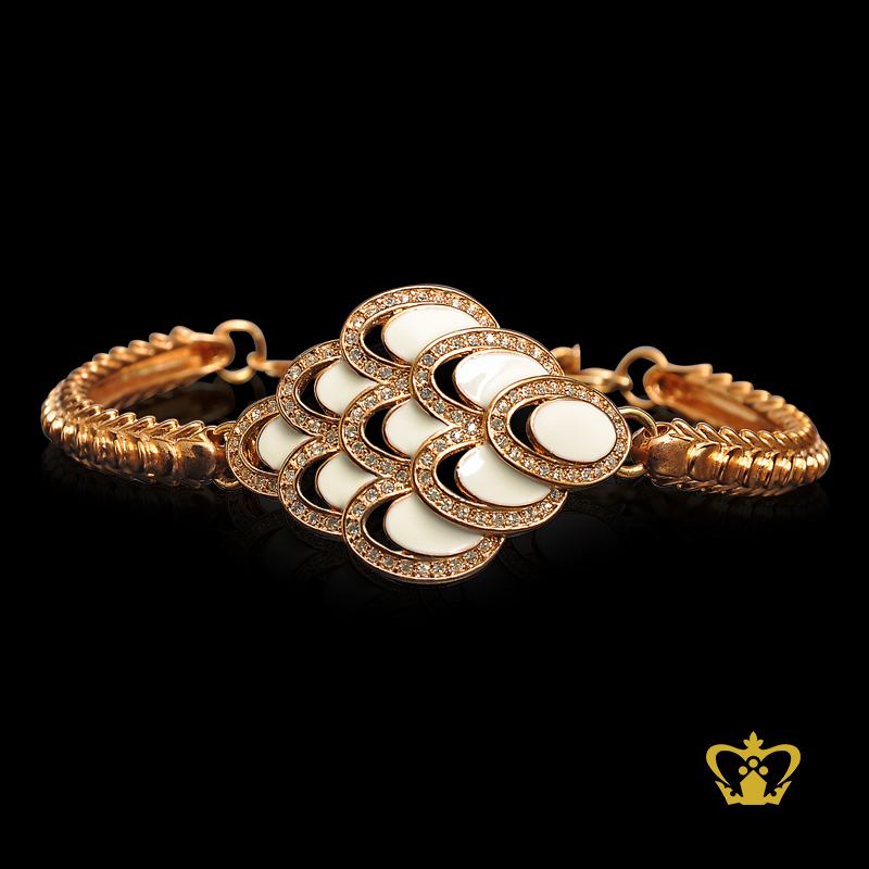 Metal drops bracelet golden embellished with sparkling crystal diamond