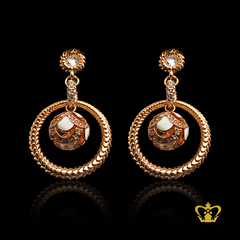 Golden color sphere earring embellished with sparkling crystal diamond exquisite jewelry gift for her
