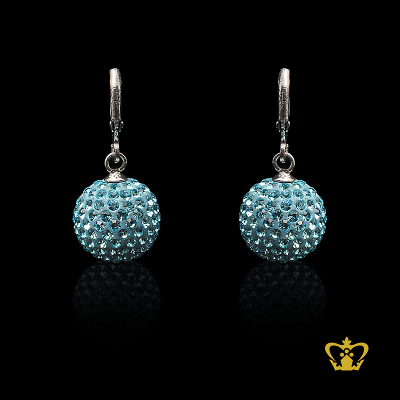 Glittery dangling round earring inlaid with blue crystal diamond elegant gift for her