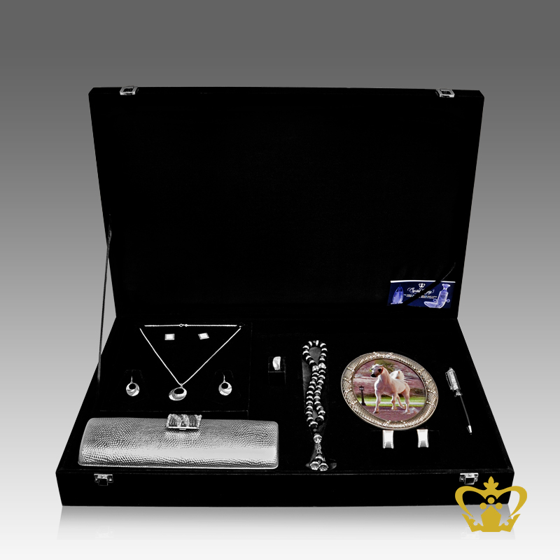 Elegant gorgeous set of jewelry pendant earring ring clutch beads cufflink pen and photo frame embellished with crystal diamond