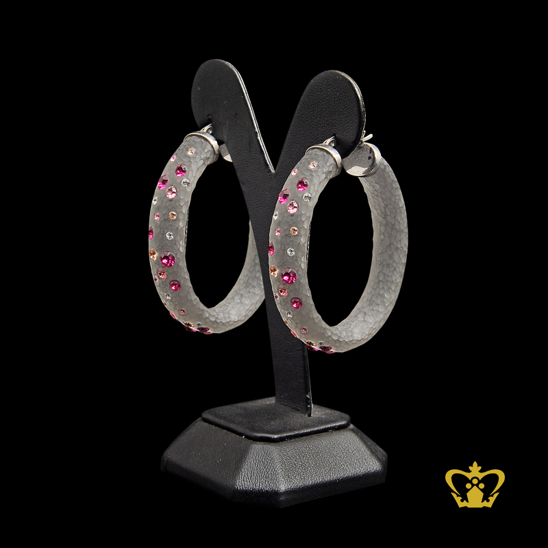 Cast enamel gray color earring embellished with multicolor crystal diamond