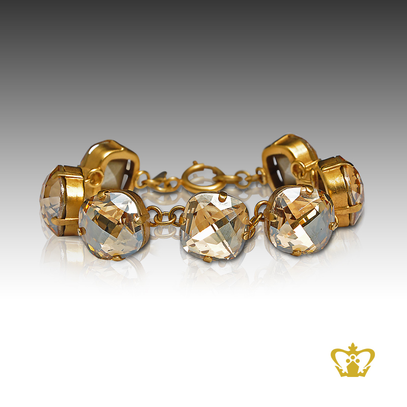 Metal bracelet gold inlaid with round crystal diamonds lovely gift for her