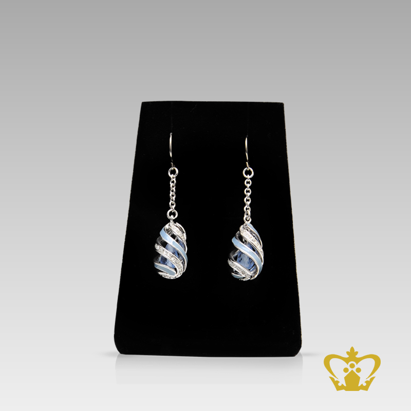 Dangling silver drop earring embellish with blue crystal stone exquisite jewelry gift for her