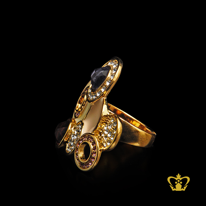Shining round golden ring inlaid with multicolor crystal diamonds lovely gift for her