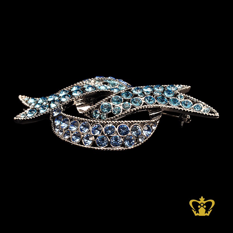 Crystal brooch bow shape embellished with sparkling blue crystal diamond lovely gift for her