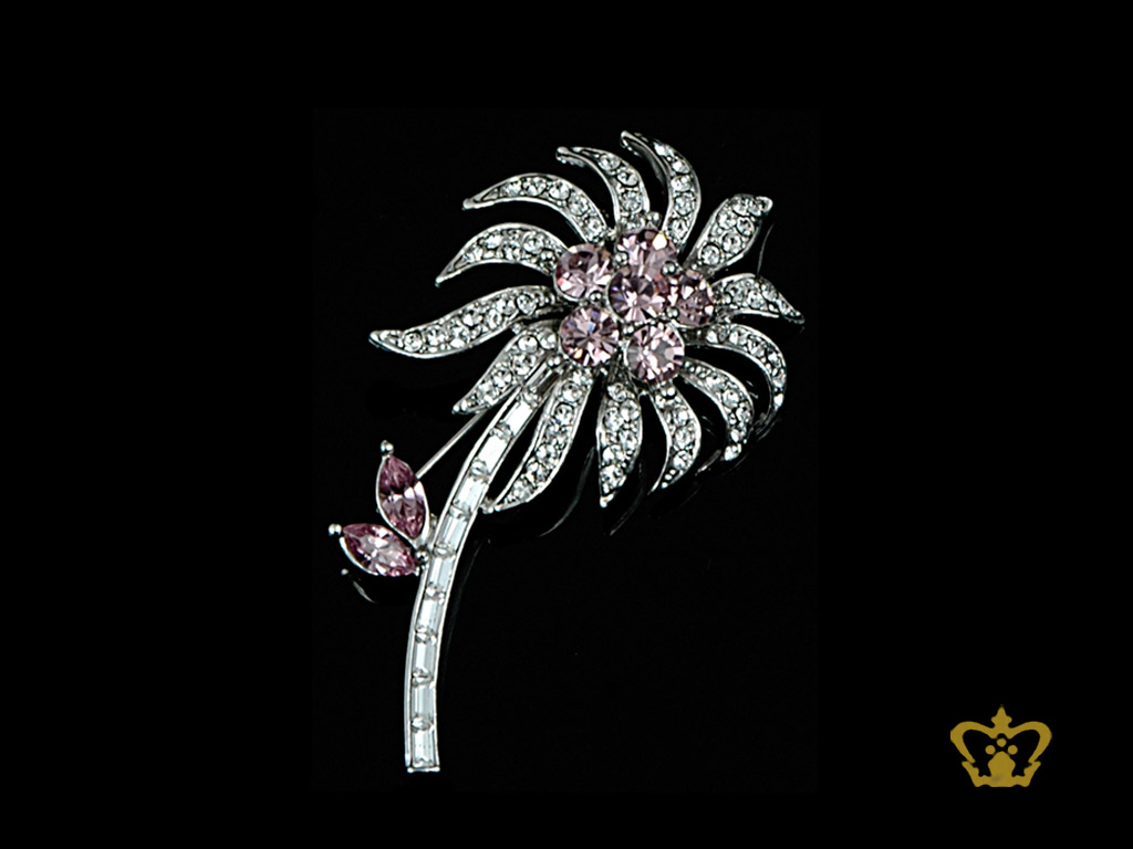Crystal brooch flower shape embellished with sparkling violet and clear crystal diamond