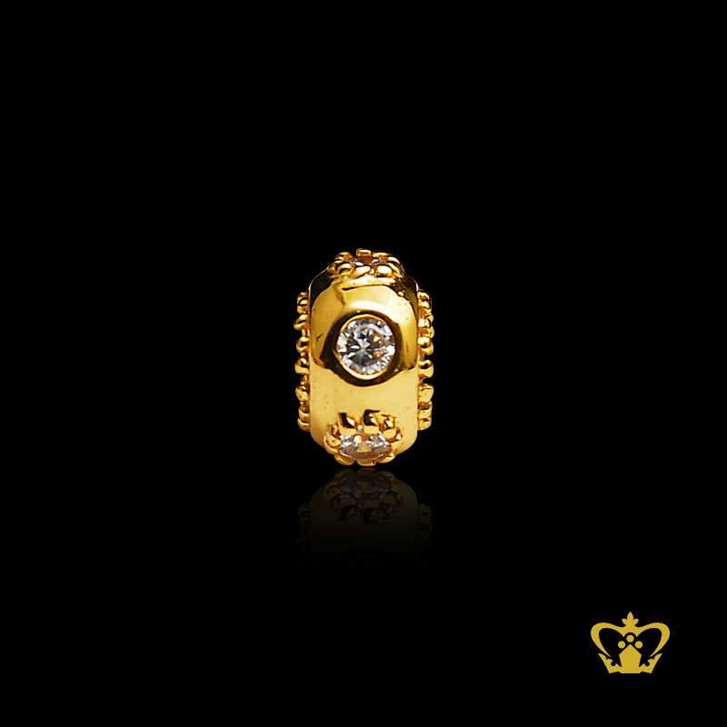 Golden bead large hole embellish with crystal diamond for fit charm bracelet perfect gift for her