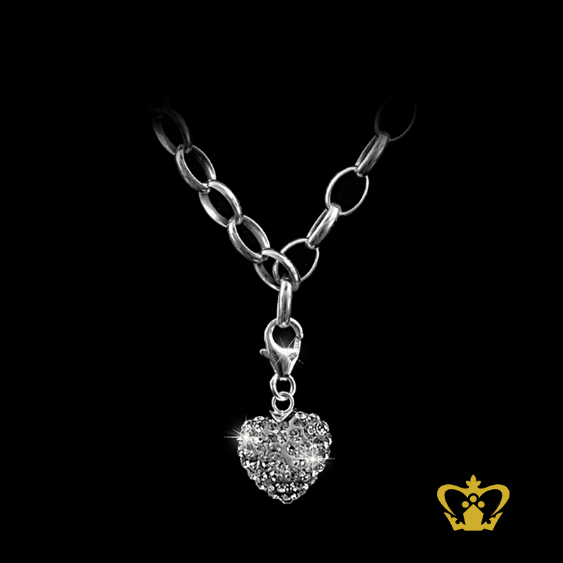 Dot the loops of your silver bracelet with this delightful crystal heart-shaped charm.
