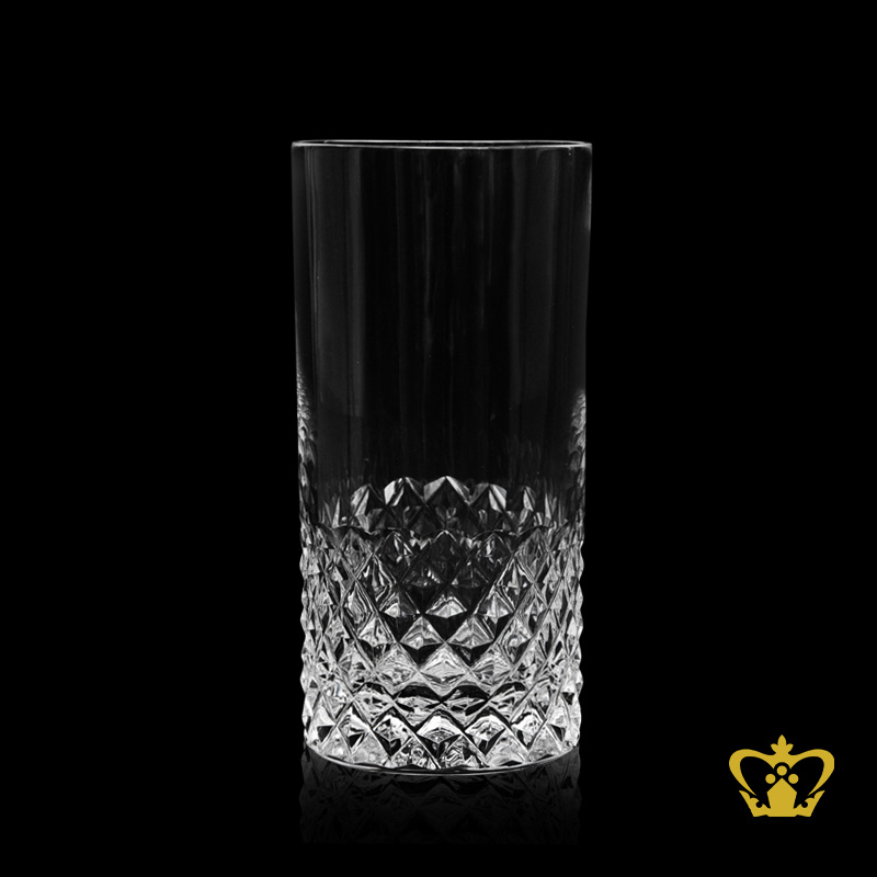 Eternal crystal tumbler tall highball glass with intense diamond cut pattern rising from bottom 15 oz