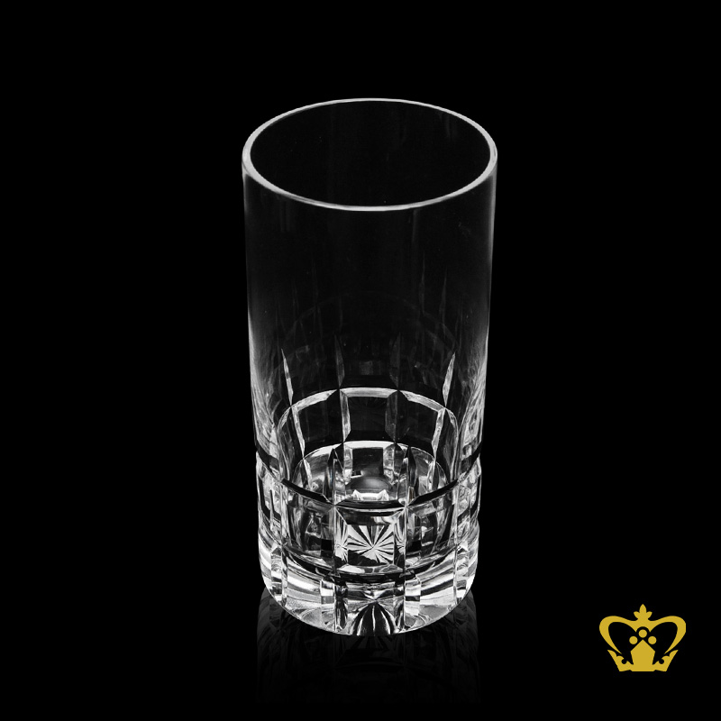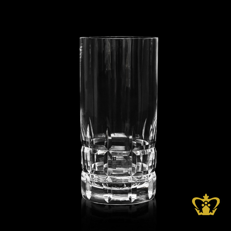 Tall highball crystal glass allured with hand carved intense square cut 15 oz