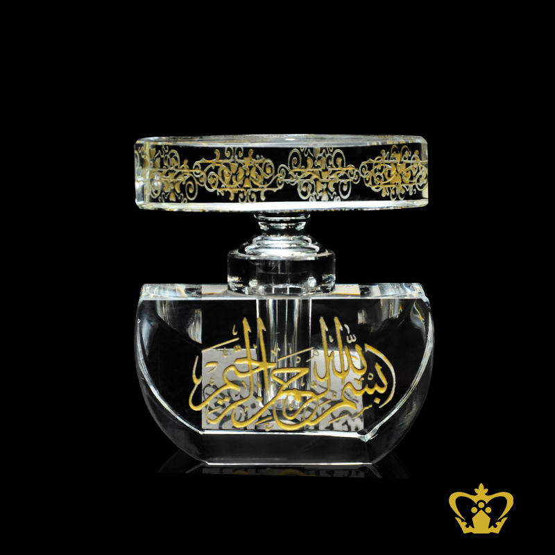 Golden arabic word calligraphy engraved Crystal perfume bottle eid gifts Religious Islamic occasions ramadan souvenir Bismillah Ir Rahman Ir Rahim