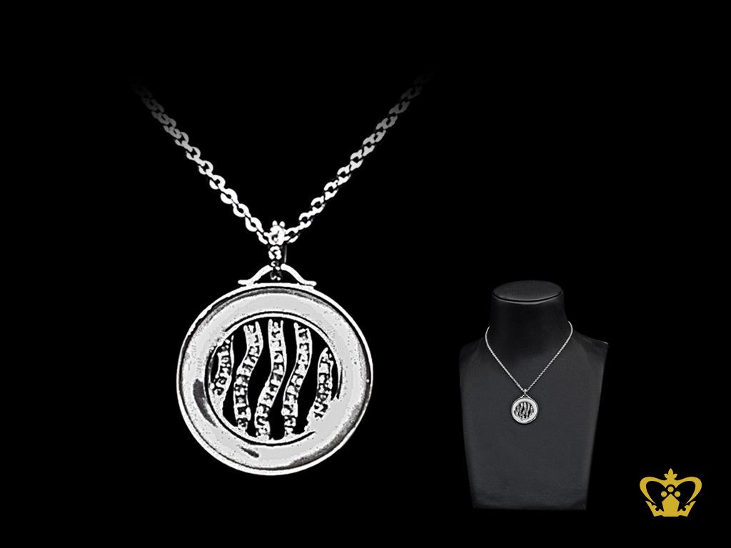 Modish silver rhodium plated pendant inlaid with crystal diamonds lovely gift for her