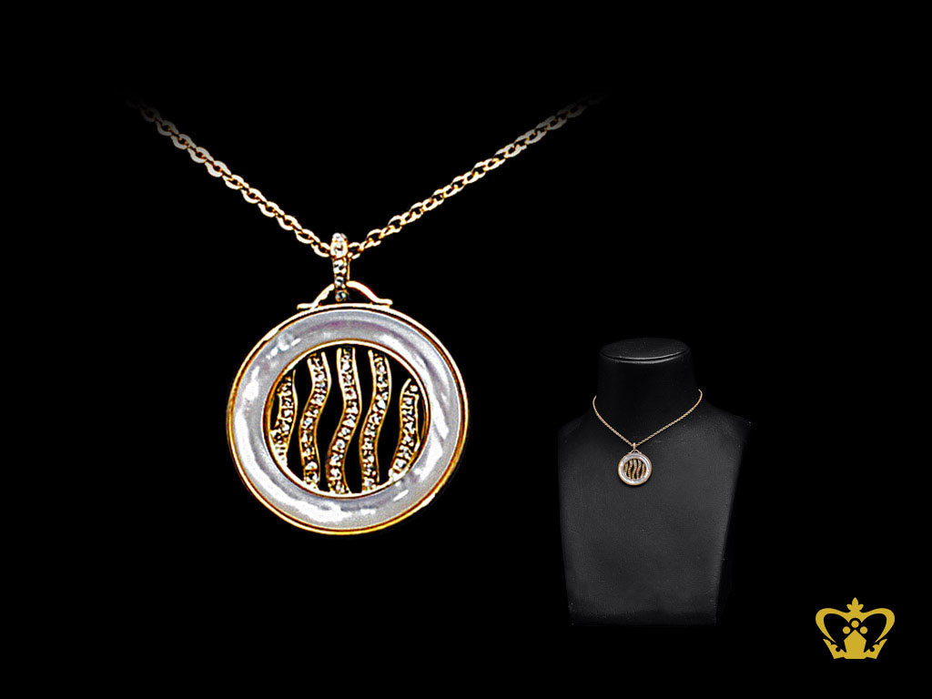 Modish-gold-rhodium-plated-round-pendant-embellish-with-crystal-diamond Product