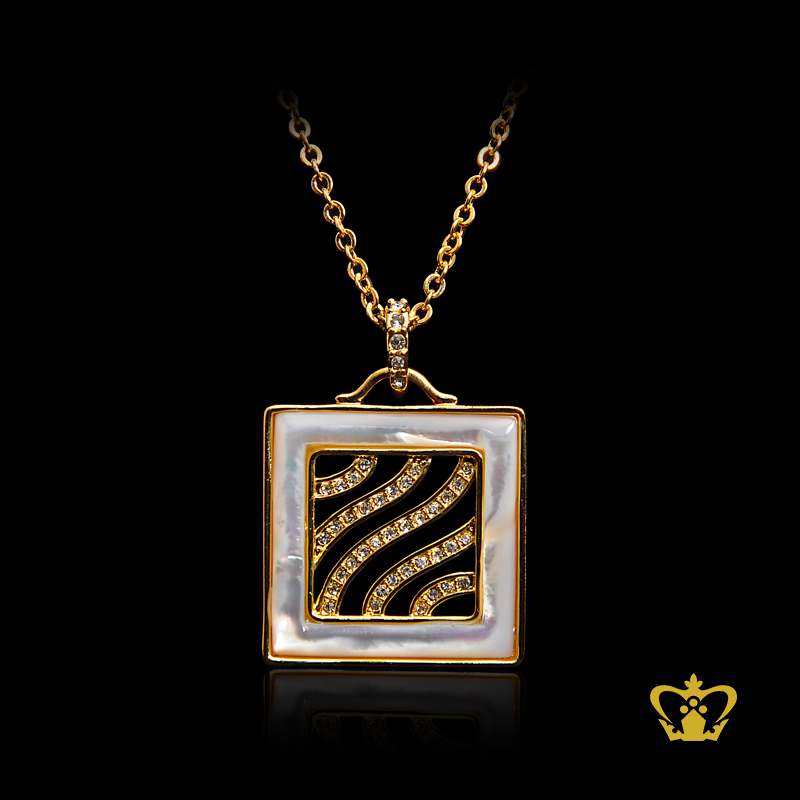 Elegant square golden pendant embellish with sparkling crystal diamond