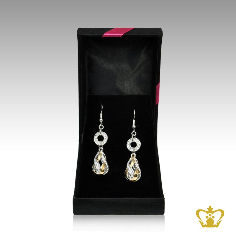 Dangling silver drop earring embellish with gold color and clear crystal diamond exquisite jewelry gift for her