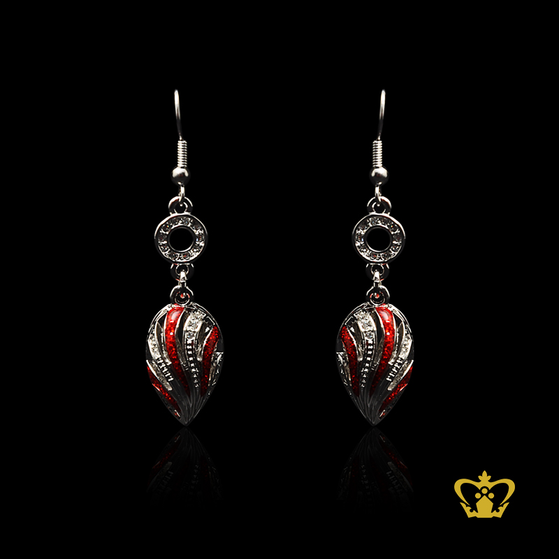 Dangling silver drop shape earring embellish with red color and clear crystal diamond exquisite jewelry gift for her
