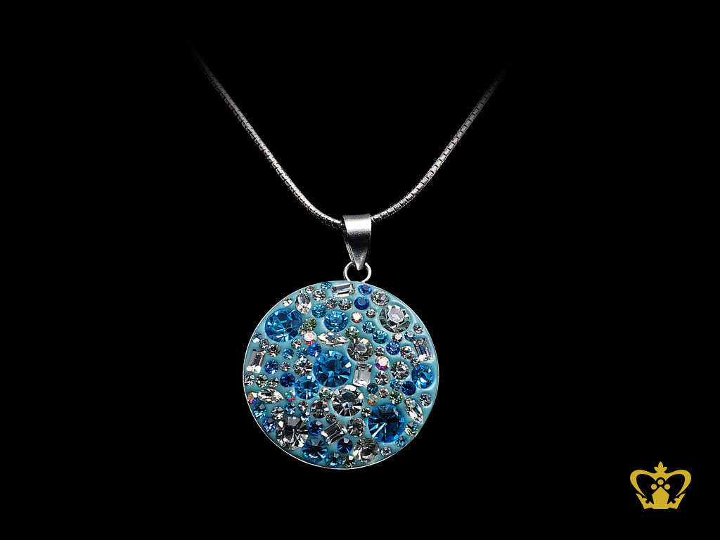 Shining round pendant with elegant clear and blue crystal chic design exquisite gift for her