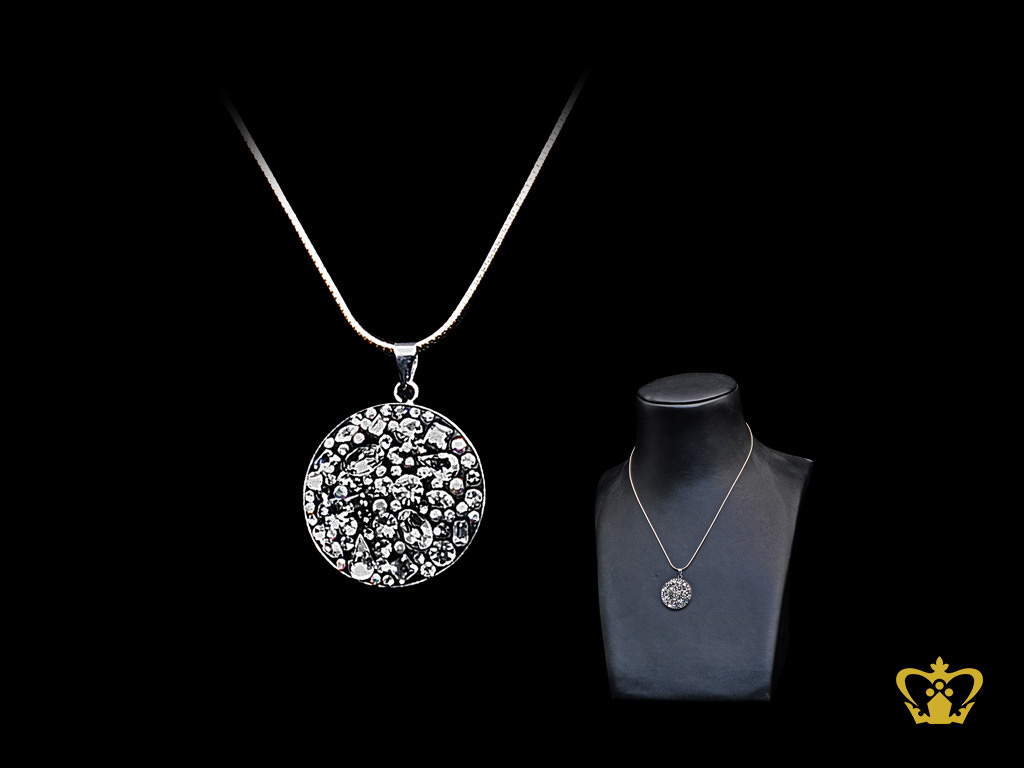 Shining round black pendant embellished with sparkling clear crystal diamond lovely gift for her
