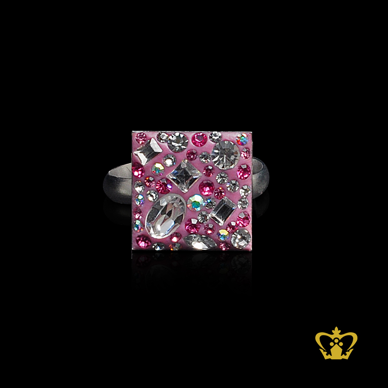 Pink alluring square ring inlaid with pink and clear crystal diamonds elegant gift for her