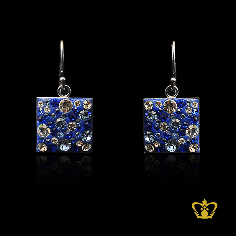 Blue alluring square earring inlaid with blue and clear crystal diamonds elegant gift for her