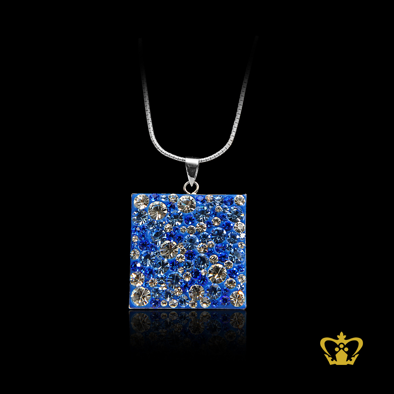 Blue alluring square pendant inlaid with blue and clear crystal diamonds elegant gift for her