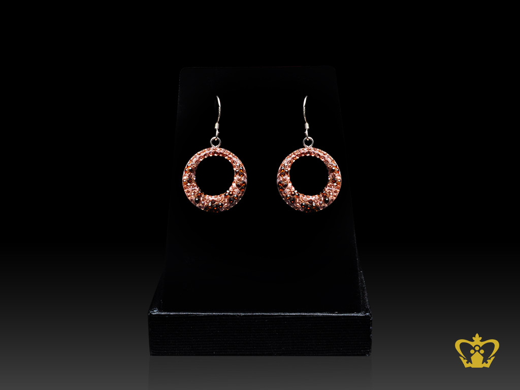 Round silver animal print earring inlaid with brown crystal stone gorgeous gift for her
