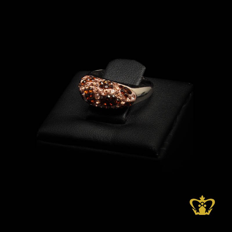 Attractive brown hue fauna prints decorate the crystals on the ring.