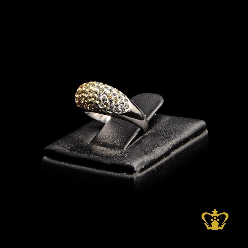 Round silver ring inlaid with amber and white crystal stone gorgeous gift for her