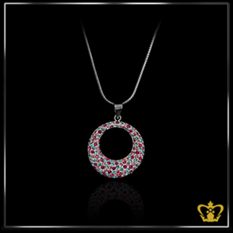 Round silver pendant inlaid with pink and blue crystal stone gorgeous gift for her