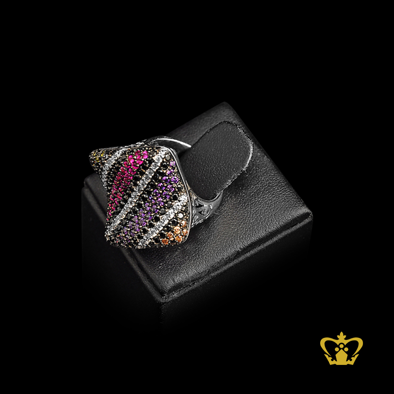 Square ring embellished with sparkling multicolor crystal diamond lovely gift for her