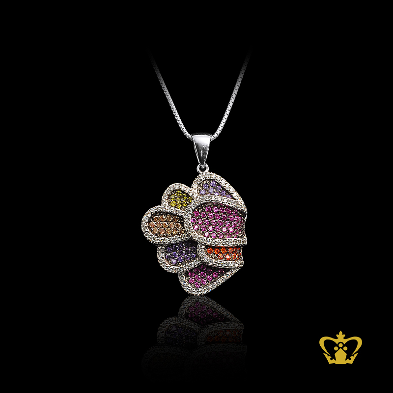 Flower pendant embellish with sparkling assorted crystal stone exquisite jewelry gift for her