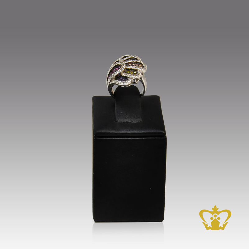 Flower ring embellish with sparkling assorted crystal stone exquisite jewelry gift for her