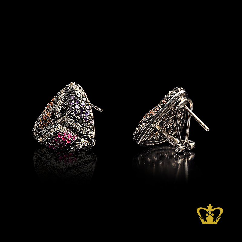 Gorgeous multicolor silver triangular earring inlaid with crystal diamonds lovely gift for her