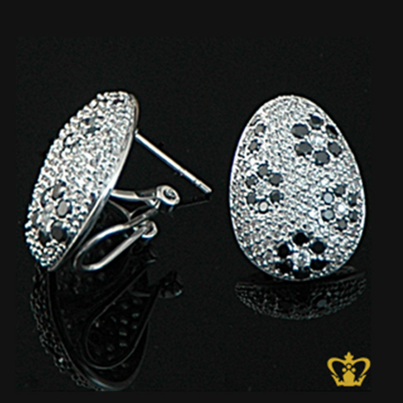 Stylish-oval-drop-earring-inlaid-with-sparkling-white-and-black-crystal-stone-lovely-gift-for-her Product