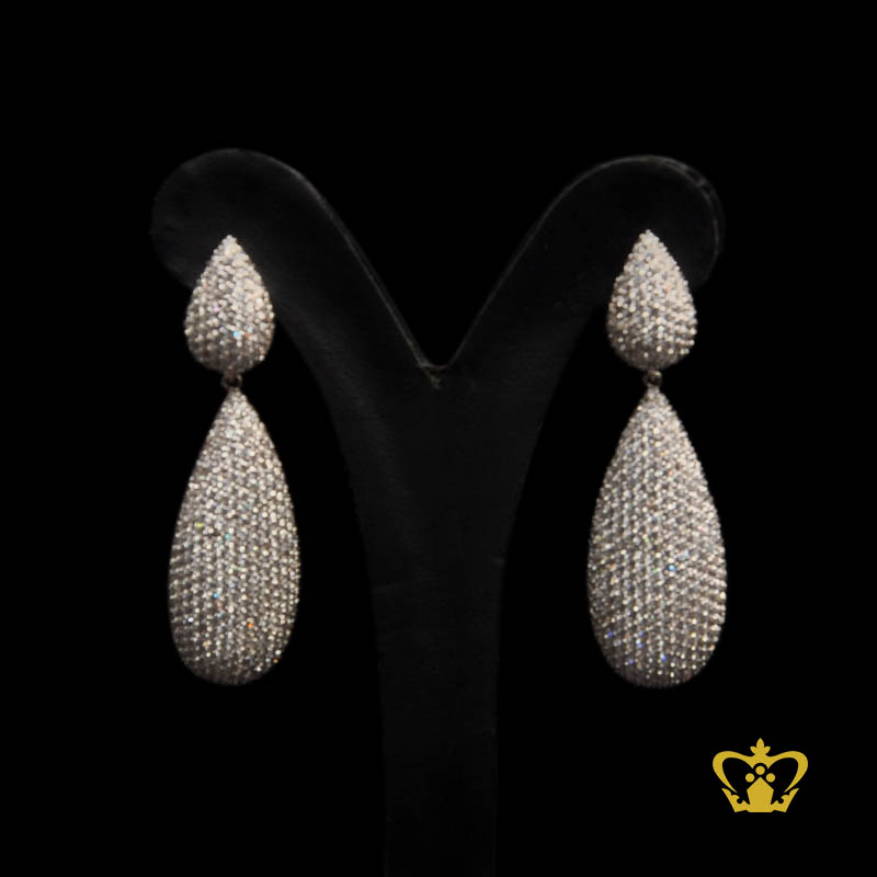 Dangling drop earring embellish with clear crystal diamond exquisite jewelry gift for her