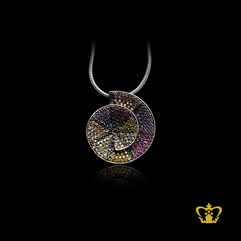 Lovely curve pendant embellished with multicolor crystal diamond gorgeous gift for her