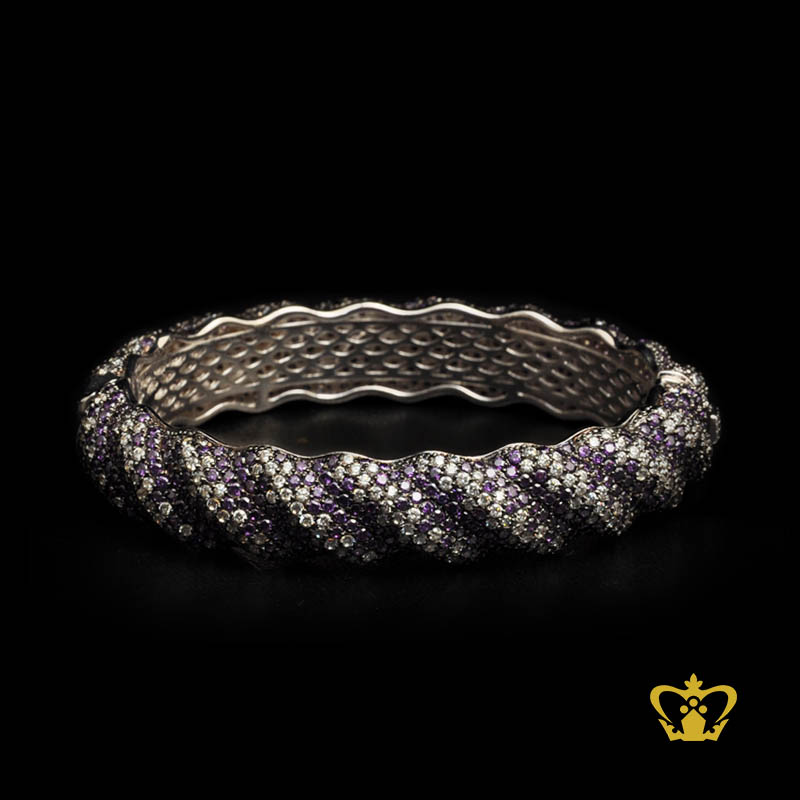 Classy-stylish-sterling-silver-bracelet-embellished-with-violet-clear-crystal-diamonds-luxurious-gift-for-her Product Product