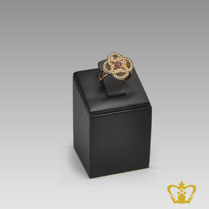 Flower-ring-pink-golden-embellished-with-sparkling-colorful-crystal-diamond Product