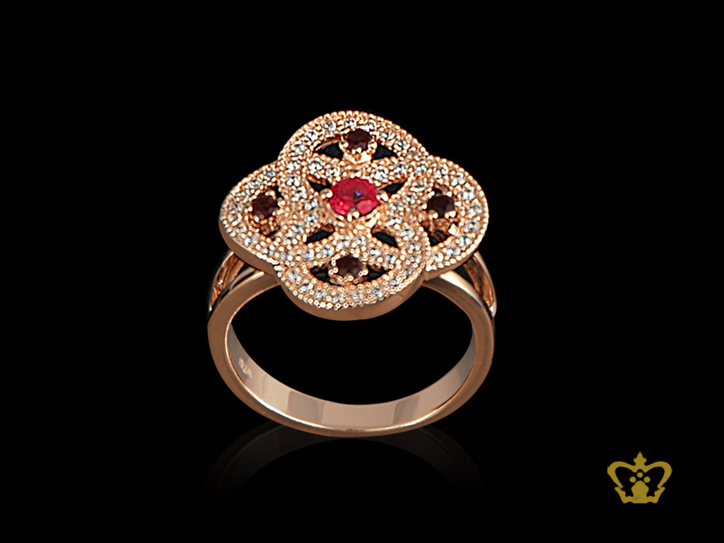 Flower-ring-pink-golden-embellished-with-sparkling-colorful-crystal-diamond Product