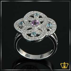 Flower-ring-silver-embellished-with-sparkling-colorful-crystal-diamond Product