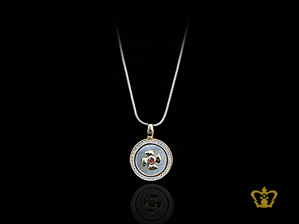 Fan design circle pendant embellished with sparkling crystal diamond gorgeous gift for her