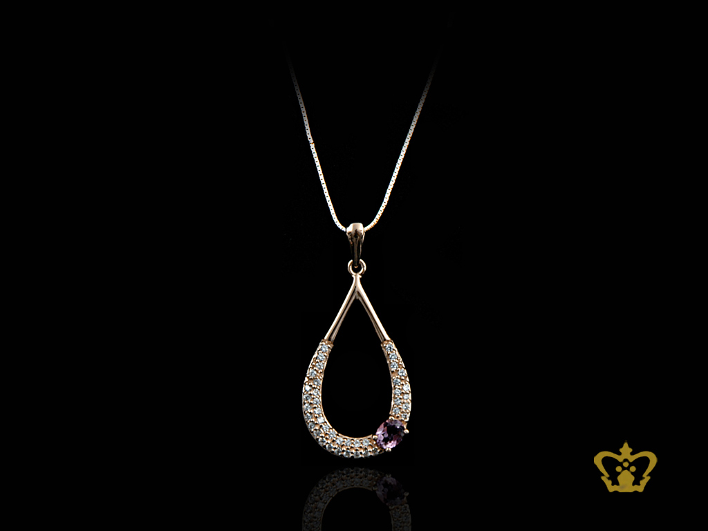Pink-gold-plated-gorgeous-drop-hole-pendant-inlaid-with-violet-and-clear-crystal-diamond-lovely-gift-for-her Product