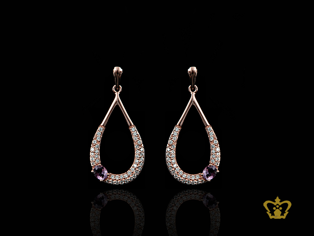 Pink-gold-plated-gorgeous-drop-hole-earring-inlaid-with-violet-and-clear-crystal-diamond-lovely-gift-for-her Product
