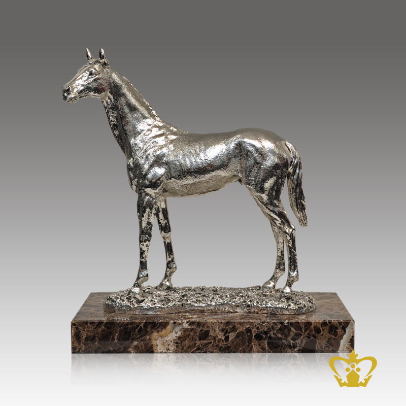 Resin-silver-horse-replica-with-marble-base-customized-logo-text-engraving Product Product Product Product Product