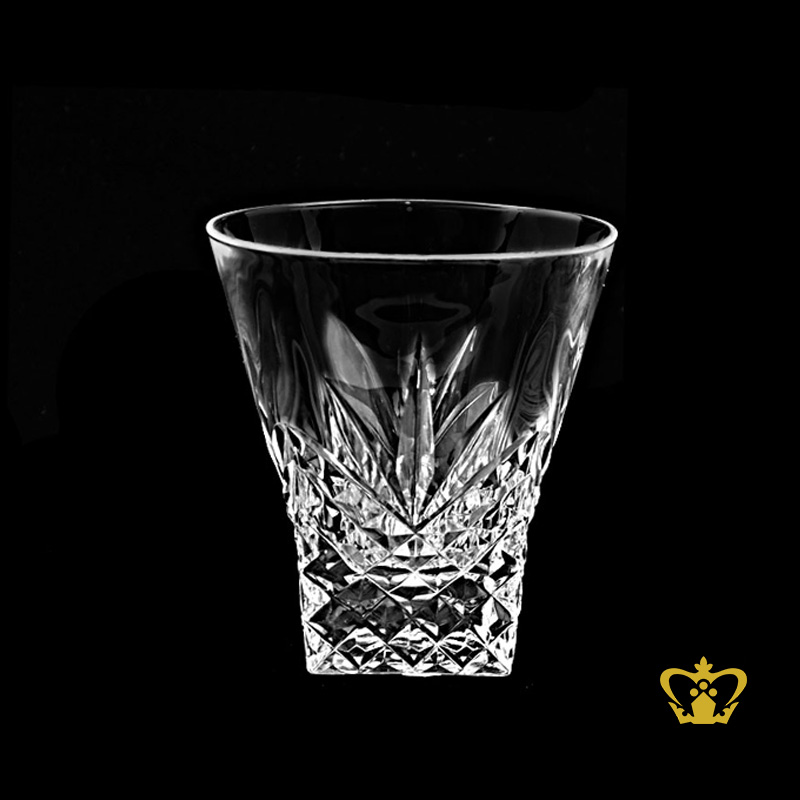 Perfectly square bottom with stylish diamond cuts elegant and vintage look on the rocks crystal whiskey glass tumbler 6 oz