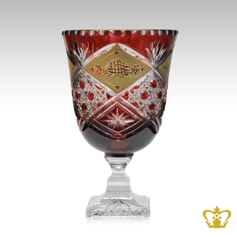 Diamond-and-Leaf-Cut-Hand-Crafted-Red-Crystal-Decorative-Vase-with-Golden-Arabic-word-Calligraphy-Bismillah-Ir-Rahman-Ir-Rahim-Engraved-Islamic-Eid-Gift-Ramadan-Souvenir Product Product Product Product Product