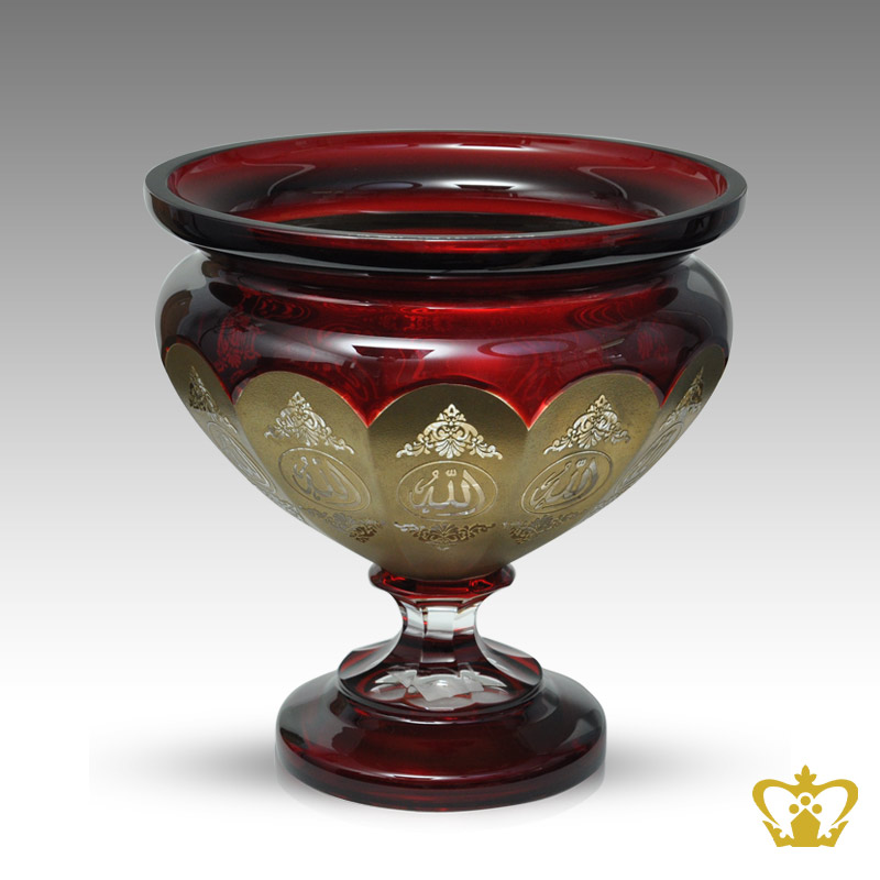 Red Crystal Footed Bowl Decorative Golden Arabic word Calligraphy engraved Allah Handcrafted Islamic Religious Ramadan Eid Gifts