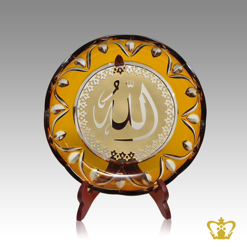 Amber-Crystal-Decorative-Plate-Hand-Crafted-With-Leaf-Cuts-Golden-Arabic-Word-Calligraphy-Engraved-Allah-Islamic-Souvenir-Eid-Ramadan-Gift Product Product Product